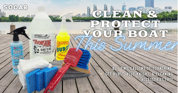 Get your boat ready for summer adventures with our Marine Detail Promo! Purchase two gallons of Toonshine Pontoon Cleaner and receive everything you need to clean your boat seats. This incredible offer includes:
