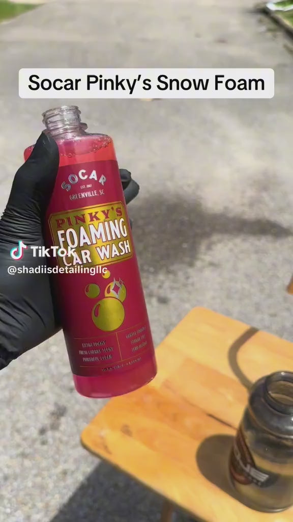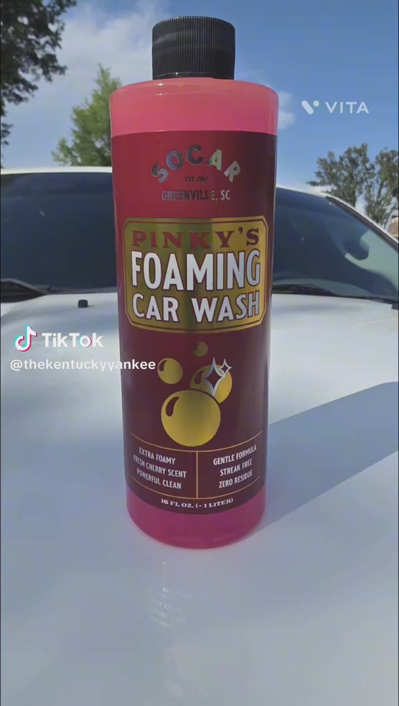 Pinky’s Foaming Car Wash is a professional-grade, concentrated super cleaner for use on cars, SUVs, trucks, RVs, and boats. It leaves your car spotless and looking new. Specially formulated with HydroFoam pH Neutral Technology™, Pinky’s produces more foam and bubbles than other car wash soaps.